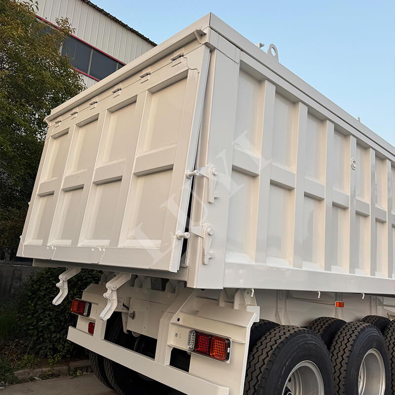 El semirremolque volquete con volteo trasero de 60 toneladas en forma de U rectangular de tres ejes Luyi, originario de la provincia de Shandong, China, es un semirremolque nuevo especialmente construido para el transporte de carga pesada. Su carga útil máxima efectiva supera los 30.000 kilogramos. Equipado con un diseño de 3 ejes, combinado con neumáticos 12R22.5 y dos tipos de suspensión opcionales: mecánica y neumática, garantiza estabilidad y confiabilidad durante el transporte de cargas pesadas.